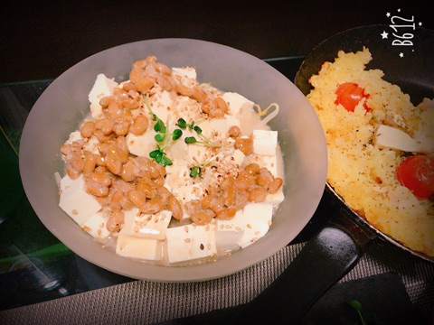 Shimeji, bean sprout, tofu, nattou